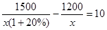根据第二次所购该书数量比第一次多10本,列方程求解,
