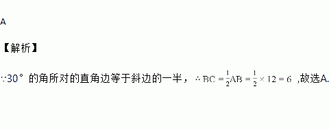 如图,△ABC中,∠C=90°,∠A=30°,AB=12,则BC=( )