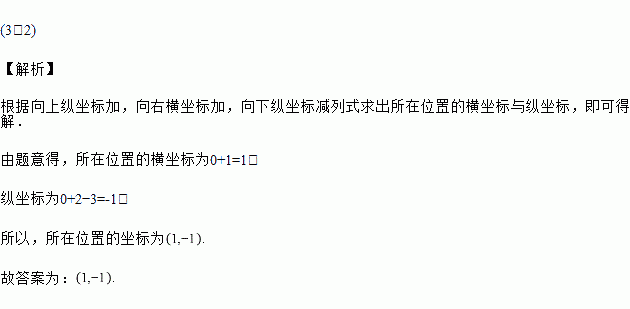 一只蚂蚁由(0,0)先向上爬4个单位长度,再向右爬3个单位长度,再向下爬2个单位长度后,它所在位置的坐标是________