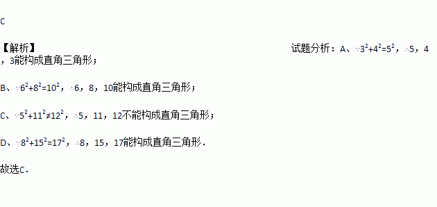 A. 3,4,5 B. 6,8,10 C. 5,11,12 D. 8,15,17