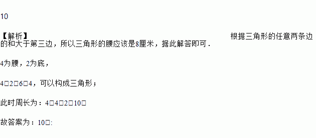 一个等腰三角形的两边分别为 2 和 4,那么它的周长为_____