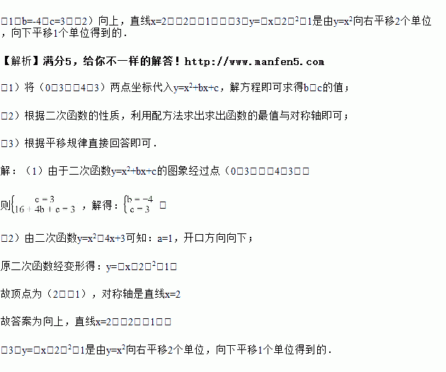 已知二次函数y=x2+bx+c的图象经过(0,3),(4,3).