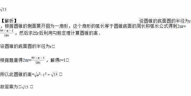 用一块半径为4,圆心角为90°的扇形纸片围成一个圆锥的侧面,则此圆锥的高为_____.