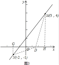 (3)如图3,设点D坐标为(m,0),连结ND,MD,过N作NG垂直x轴于G,过M作MH垂直x轴于H.在直角△DGN和直角△MDH中,利用勾股定理得到关于m的方程12+(m+2)=42+(3-m)2