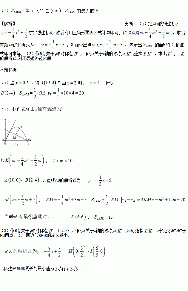 (3)在(2)的条件下,点H 在y轴上运动,点I在x轴上运动. 则当四边形BHIK周长最小时,求出H、I的坐标以及四边形BHIK周长的最小值.