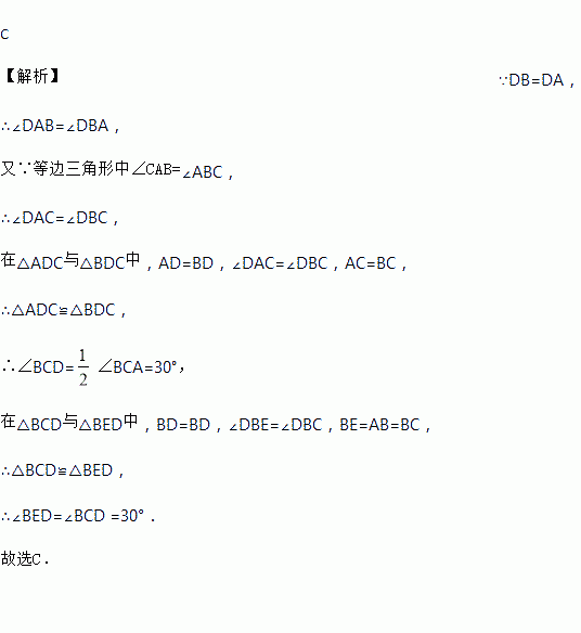 如图, 为等边的内部一点, , , ,则等于( )