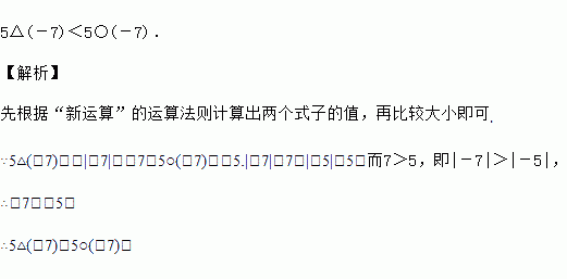 规定:a△b=-|b|,a○b=-a,如当a=3,b=4时,a△b=-|4|=-4,a○b=-3.根据以上规定,比较5△(-7)与5○(-7)的大小.