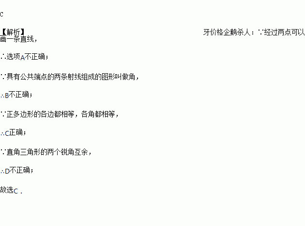 C 、正多边形的各边都相等,各角都相等