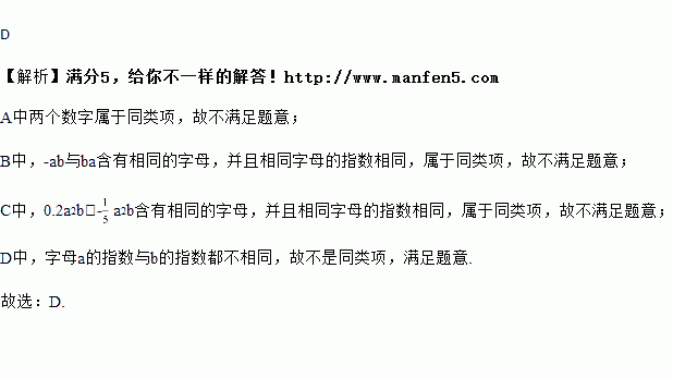 a2b D. a2b3与﹣a3b2