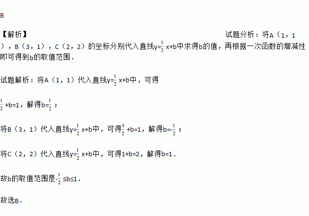 x+b与△ABC有交点时,b的取值范围是( )