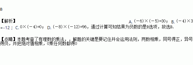 A. (-6)×(-5) B. (-4)×3 C. 0×(-4) D. (-8)×(-12)