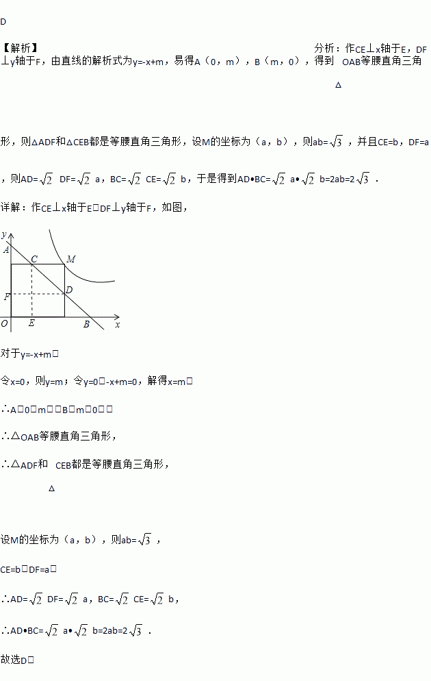 如图,M是双曲线上一点,过点M作轴、y轴的垂线,分别交直线于点D、C,若直线与轴交于点A,与轴交于点B,则的值为( )