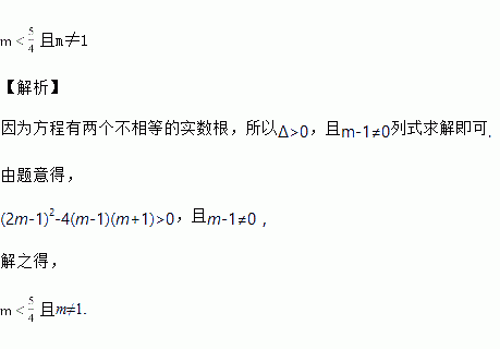 已知关于x的一元二次方程有两个不相等的实数根.求m的取值范围.