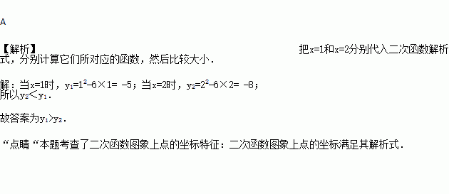已知点(1,y1),(2,y2)是抛物线上的两点,则y1,y2的大小关系为( )