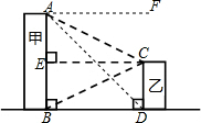 | 测得数据 | BD=32m,∠ACE=∠BCE=31° | BD=32m,∠DAF=50°,∠CAF=31° |