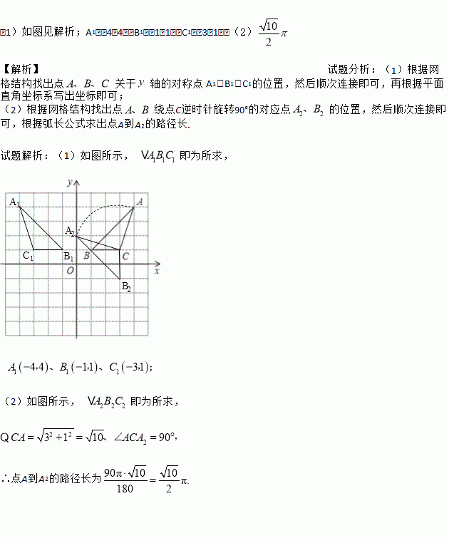 (2)将△ABC绕点C逆时针旋转90°,画出旋转后的△A2B2C2,并求出点A到A2的路径长.