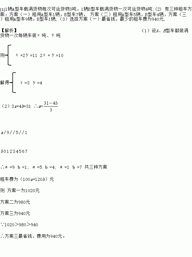 (1)1辆A型车和1辆B型车载满货物一次分别可运货物多少吨?