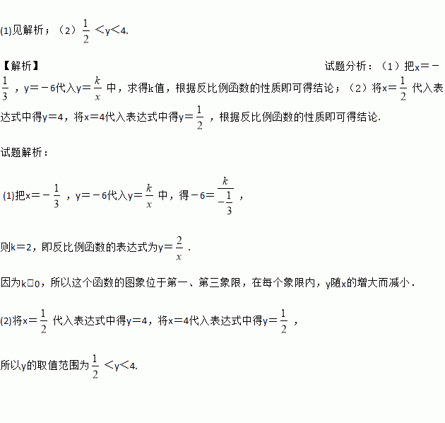 (1)这个函数的图象位于哪些象限?y随x的增大如何变化?
