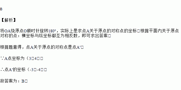在平面直角坐标系xOy中,A点坐标为,将OA绕原点O顺时针旋转得到,则点的坐标是