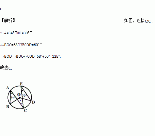 A. 64° B. 124° C. 128° D. 130°