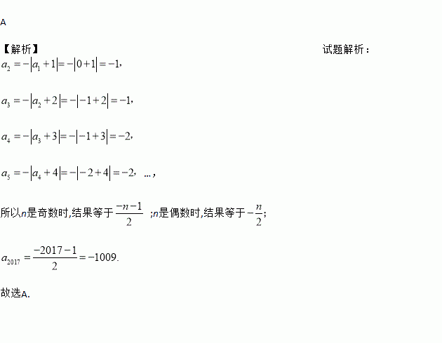 已知整数a1,a2,a3,a4……满足下列条件:a1=0,a2=-|a1+1| a3=-|a2+2|,a4=-|a3+3|……依次类推,则a2017的值为
