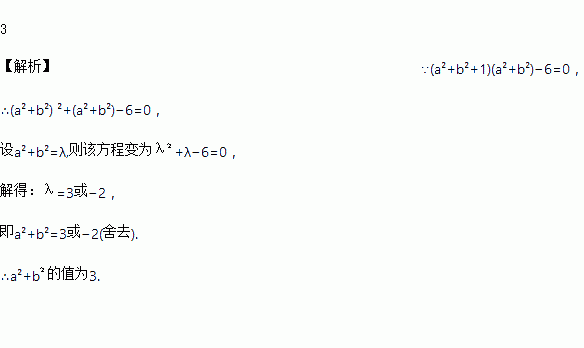 已知(a2+b2)2﹣(a2+b2)﹣6=0,则a2+b2=_____.