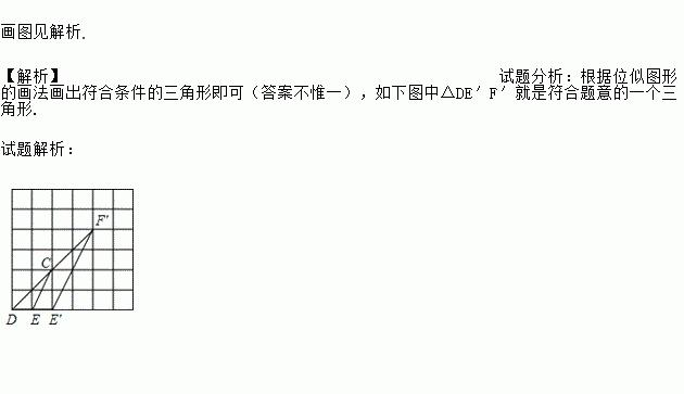 如图,点都在网格线交点处的三角形叫做格点三角形,已知图中的每个小正方形的边长都是1个单位,在图中选择适当的位似中心,画一个与格点△DEF位似且位似比不等于1的格点三角形________ .