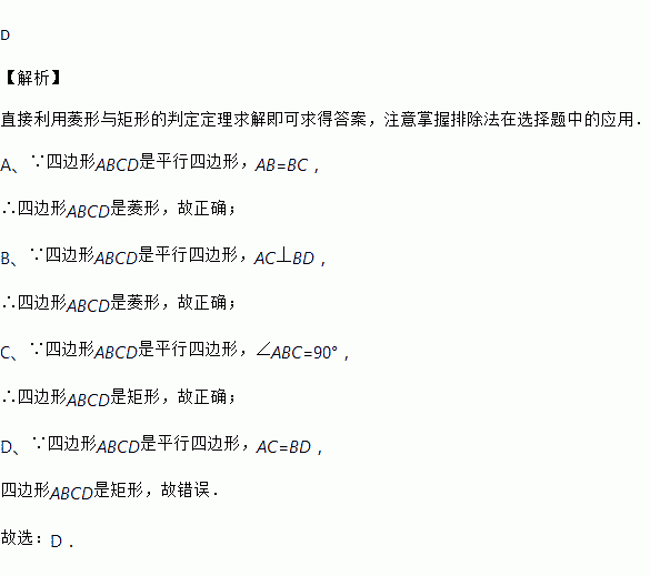 C. 当∠ABC=90°时,它是矩形 D. 当AC=BD时,它是正方形