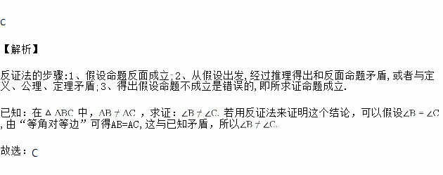 已知:在中,,求证:若用反证法来证明这个结论,可以假设