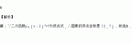 二次函数y=(x﹣2)2+7的顶点坐标是( )
