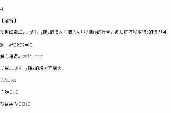 反比例函数中,k值满足方程k2﹣k﹣2=0,且当x>0时,y随x的增大而增大,则k=________
