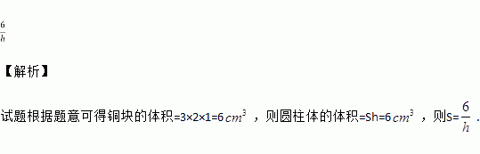 把一个长、宽、高分别为3cm、2cm、1cm的长方体铜块铸成一个圆柱体铜块,则该圆柱体铜块的底面积S(cm2)与高h(cm)之间的函数关系式为________.
