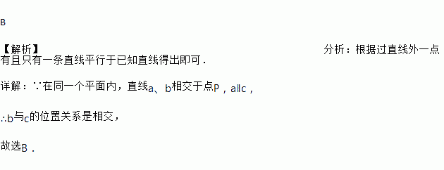 在同一个平面内,直线a、b相交于点P,a∥c,b与c的位置关系是( )