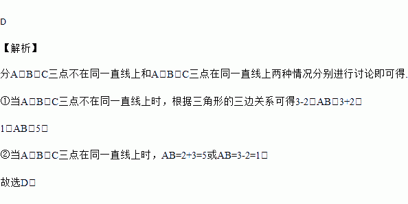 已知线段AC=3,BC=2,则线段AB的长度( )