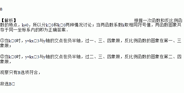 在同一直角坐标系中,函数y=和y=kx﹣3的图象大致是( )
