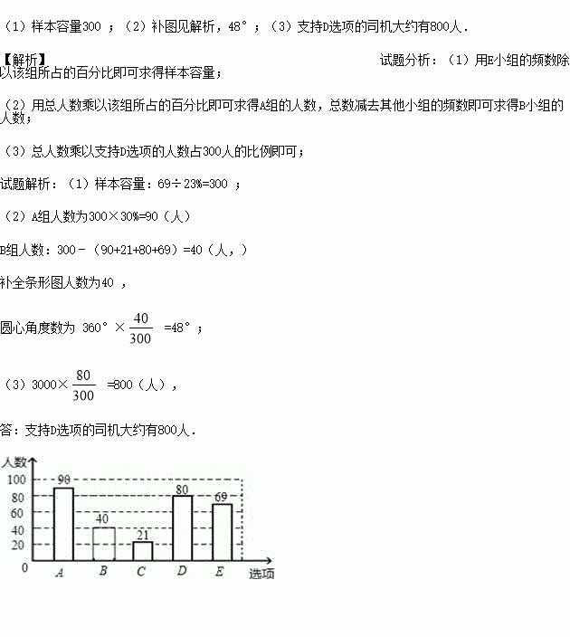 (3)若我市有3000名司机参与本次活动,则支持D选项的司机大约有多少人?