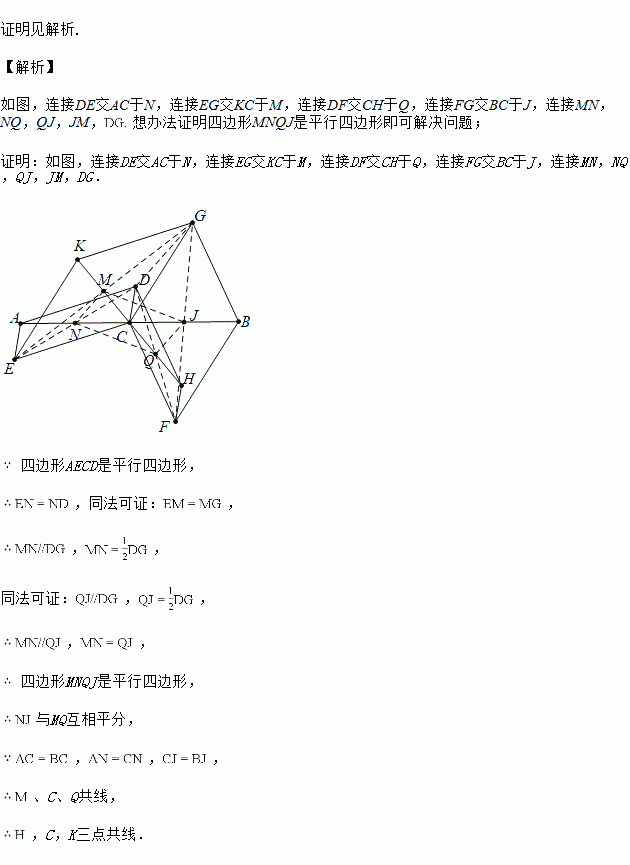 如图,设线段AB的中点为C,以AC和CB为对角线作平行四边形AECD、又作平行四边形CFHD、CGKE.