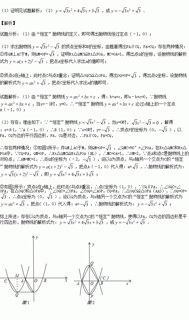 的顶点为P,与x轴另一个交点为B,是否存在以Q为顶点,与x轴另一个交点为C的“恒定”抛物线,使得以PA,CQ为边的四边形是平行四边形?若存在,求出抛物线解析式;若不存在,请说明理由.