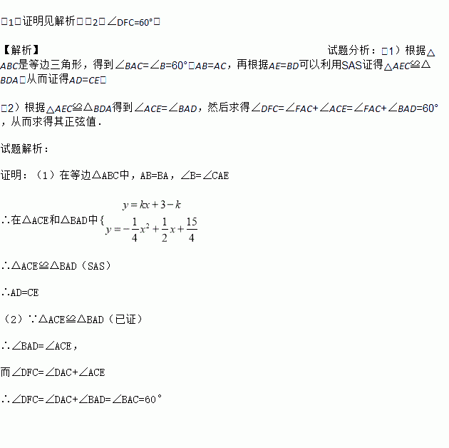 Èçͼ£¬Ôڵȱߡ÷ABCÖУ¬µãD¡¢E·Ö±ðÔÚ±ßBC¡¢ABÉÏ£¬ÇÒBD=AE£¬ADÓëCE½»ÓÚµãF£®