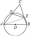 【答案】分析:因为A、B、E、D四点共圆,易证三角形CDE相似于三角形CBA,所以CE:AC=DE:AB,连接AE,AB为直径,所以AE垂直于BC,所以cos∠C=CE:AC所以cos∠C=CE:AC=DE:AB=DE:1=DE.