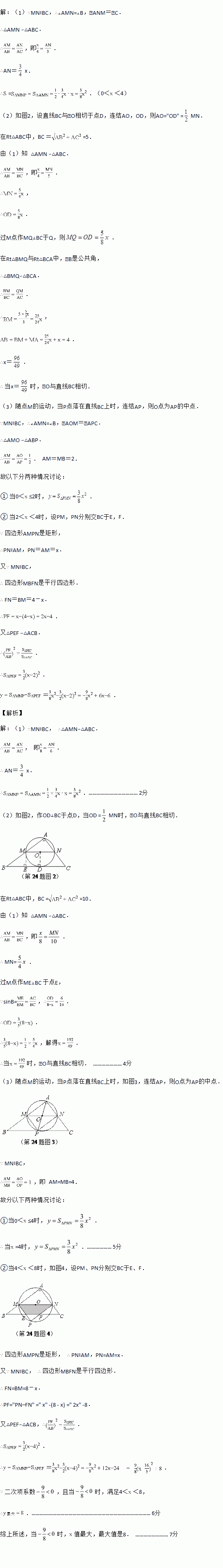 在△ABC中,∠A=90°,AB=4,AC=3,M是AB上的动点(不与A,B重合),过M点作MN∥BC交AC于点N.以MN为直径作⊙O,并在⊙O内作内接矩形AMPN.令AM=x.