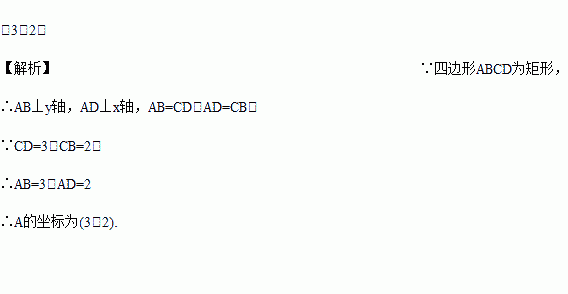 如图所示,在长方形ABCD中,CD=3,CB=2,则此时点A的坐标为_______。