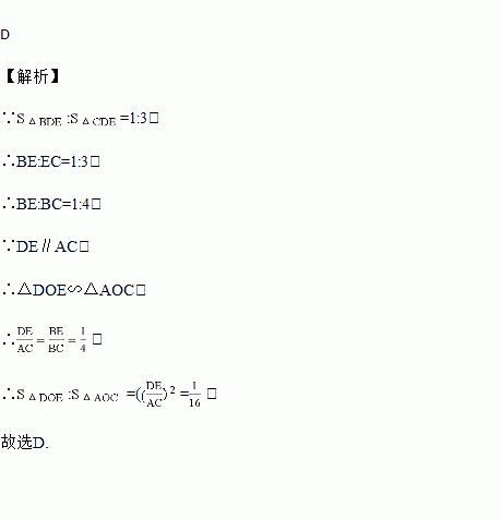 如图,D、E分别是△ABC的边AB、BC上的点,DE∥AC,若S△BDE∶S△CDE=1∶3,则S△DOE∶S△AOC的值为( )