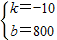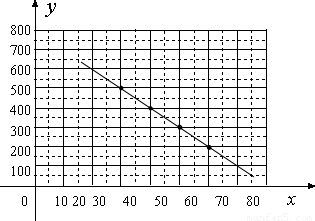 ∴函数关系式是:y=-10x+800(0≤x≤80)