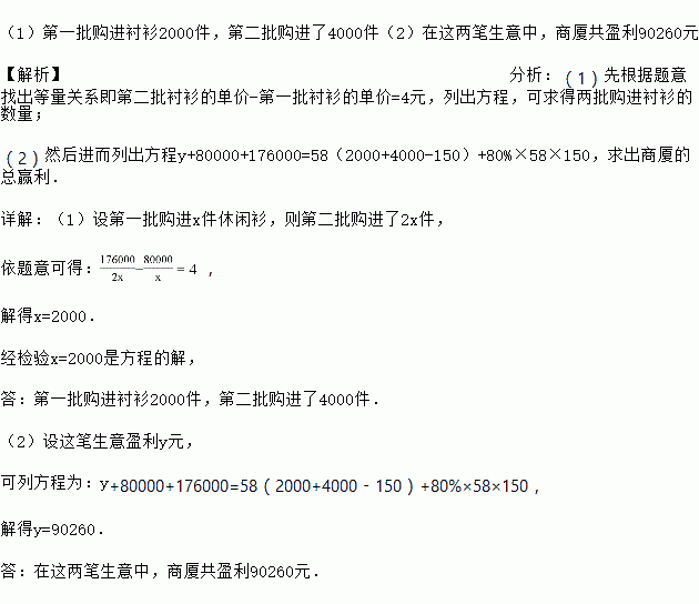 (1)商厦第一批和第二批各购进休闲衫多少件?