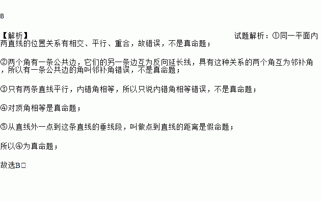 ⑤ 从直线外一点到这条直线的垂线段,叫做点到直线的距离。
