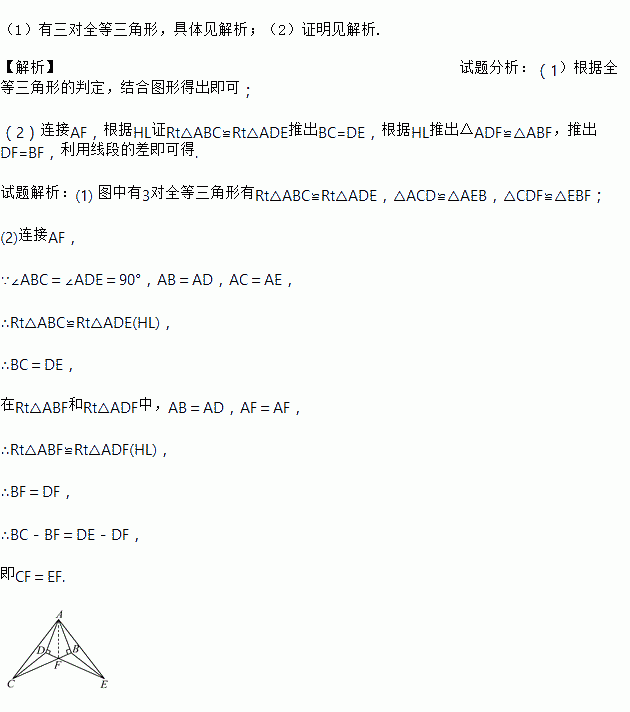 如图,∠ABC=∠ADE=90°,AD=AB,AC=AE,BC与DE相交于点F,连接CD、EB.