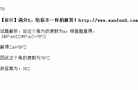 若一个角的补角比它的余角的2倍还多70°,则这个角的度数为_____度.
