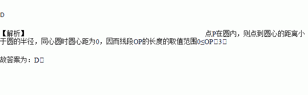 已知⊙O的直径为6cm,且点P在⊙O内,则线段PO的长度(范围)( )