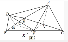 如图2中,作DM⊥EB,AN⊥BC,垂足分别为M、N.连接NF且延长到K,EB、DF交于点O.